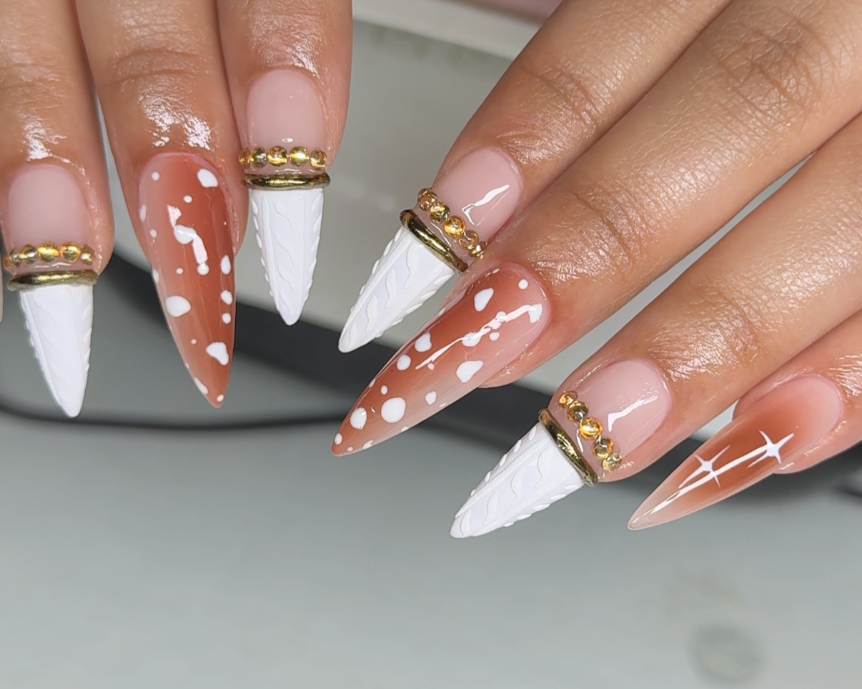 intermediate, French set, animal print, 3Dv texture, light isolated chrome, medium line work, up to 3 designs, etc.. or only a full chrome/chrome French set or multi color airbrush set.